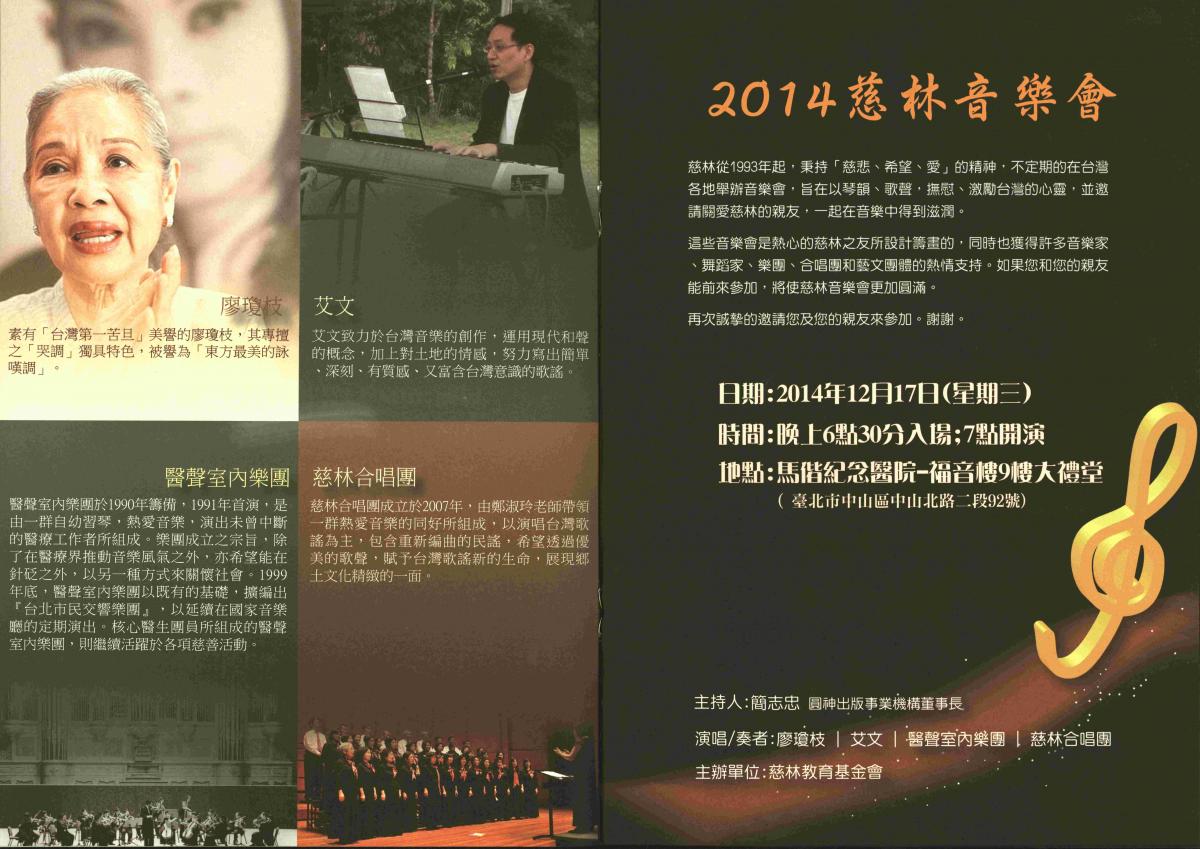 演出者:廖瓊枝、艾文、醫聲室內樂團、慈林合唱團